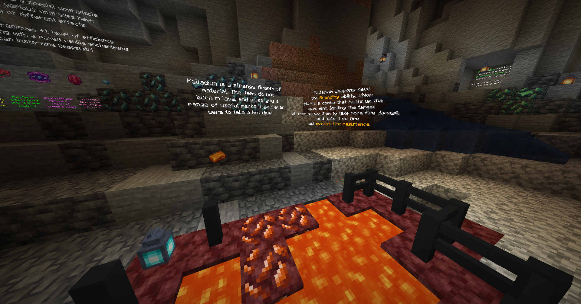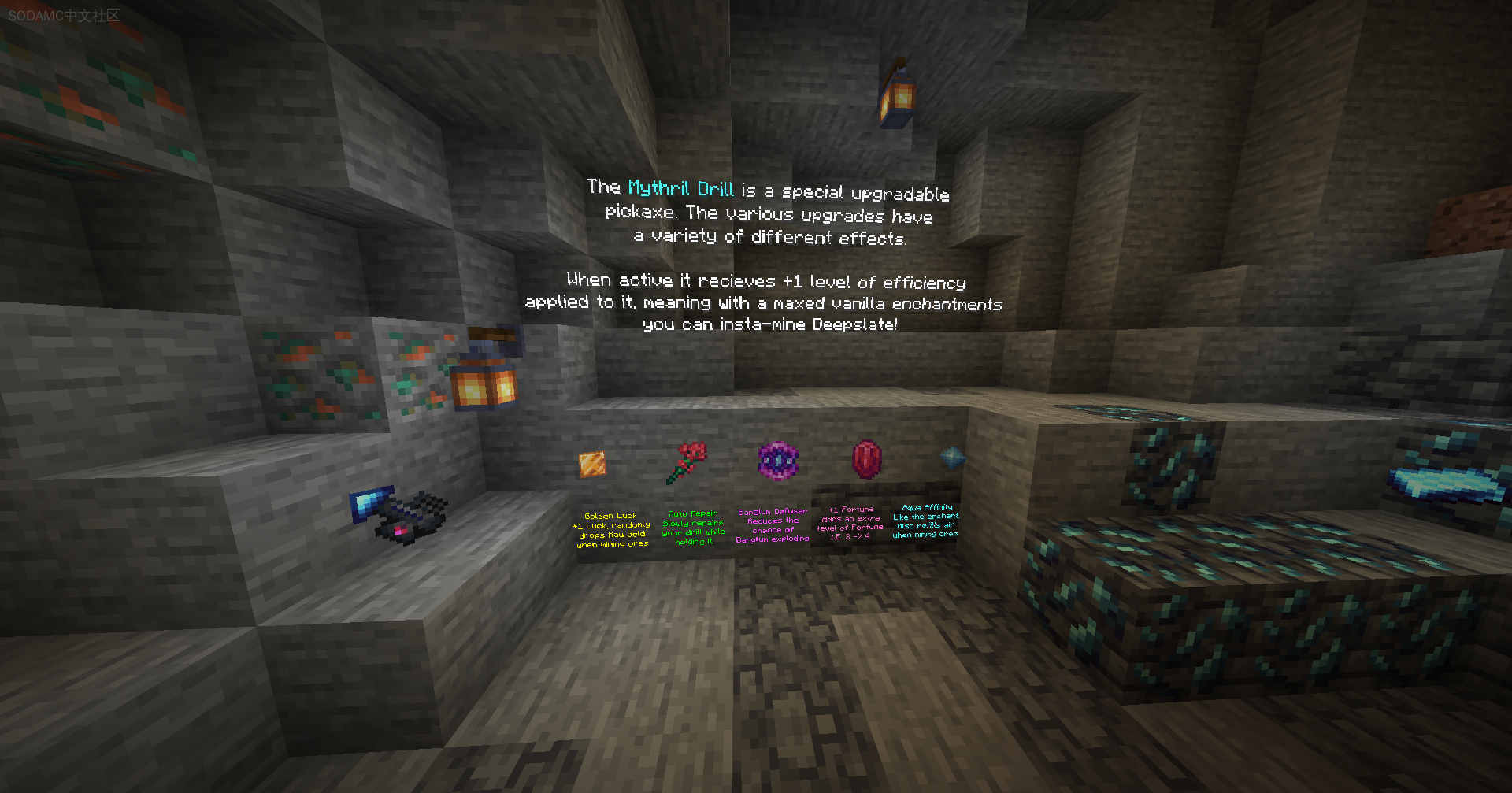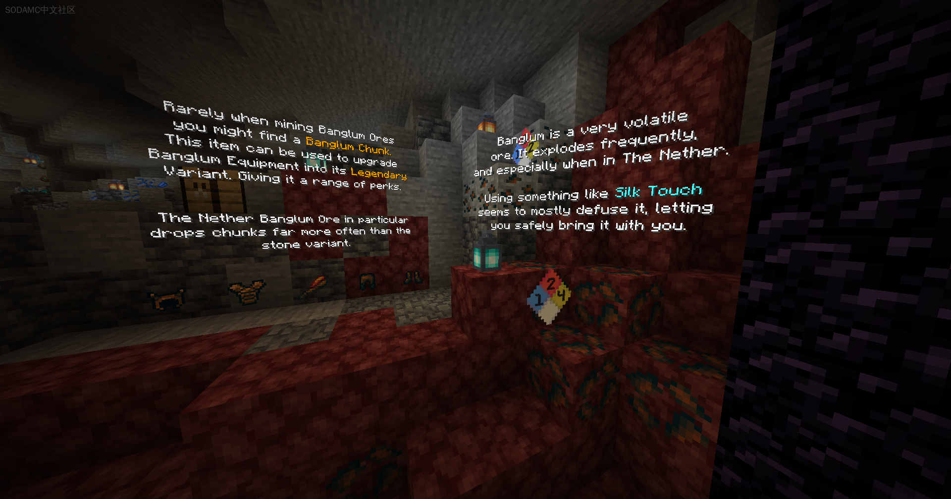 神秘金属模组为游戏增加了大量的矿石、工具套装、武器和盔甲。这些矿石覆盖了地下的各个区域,甚至还有一些存在于地狱和末地!