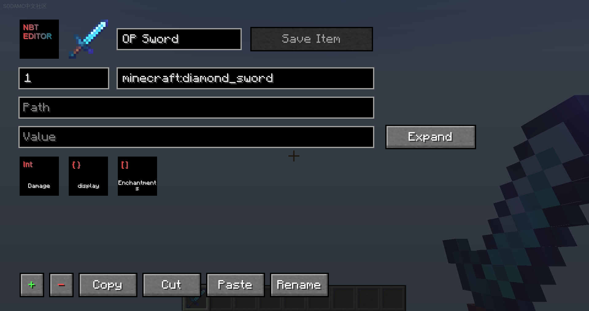 - /nbt: 打开一个菜单以编辑您当前持有的物品