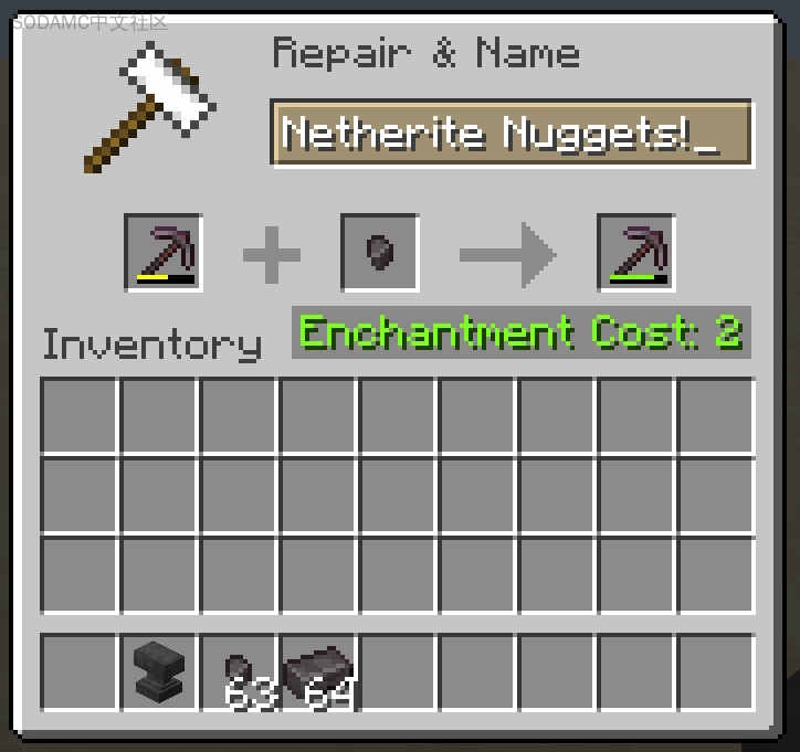 本模组为修复 Netherite 装备添加了 Netherite 鹅卵石,因为使用 Netherite