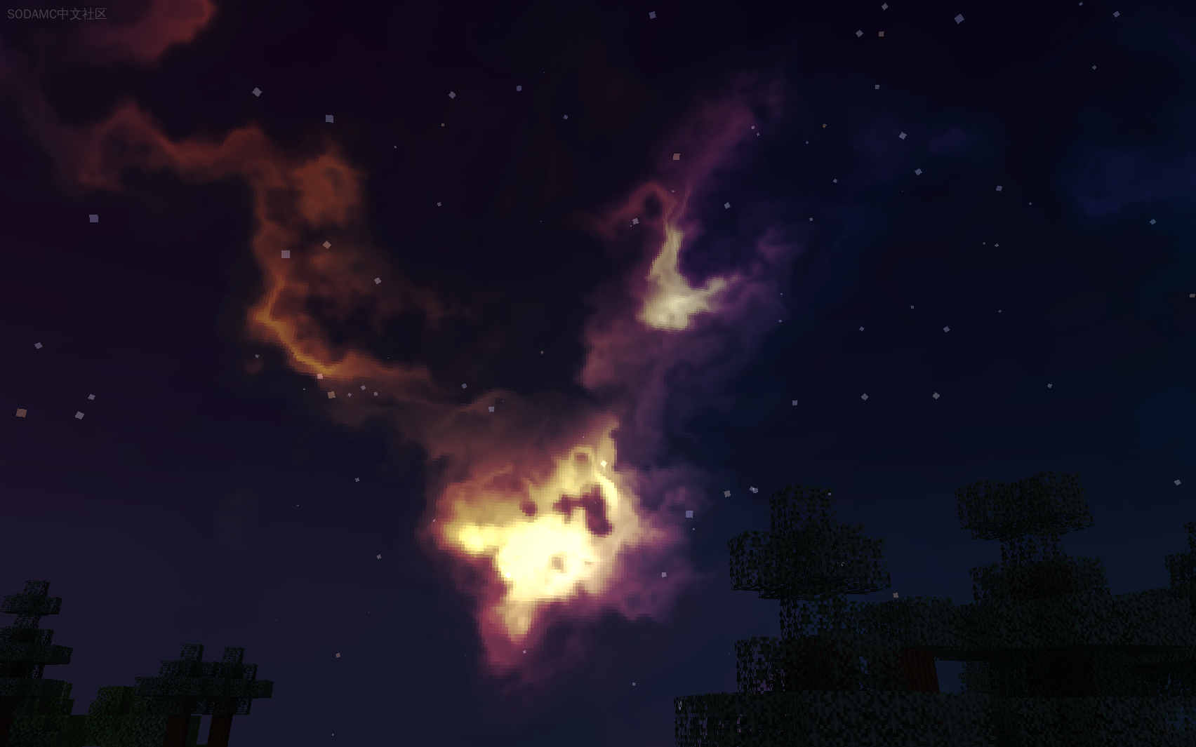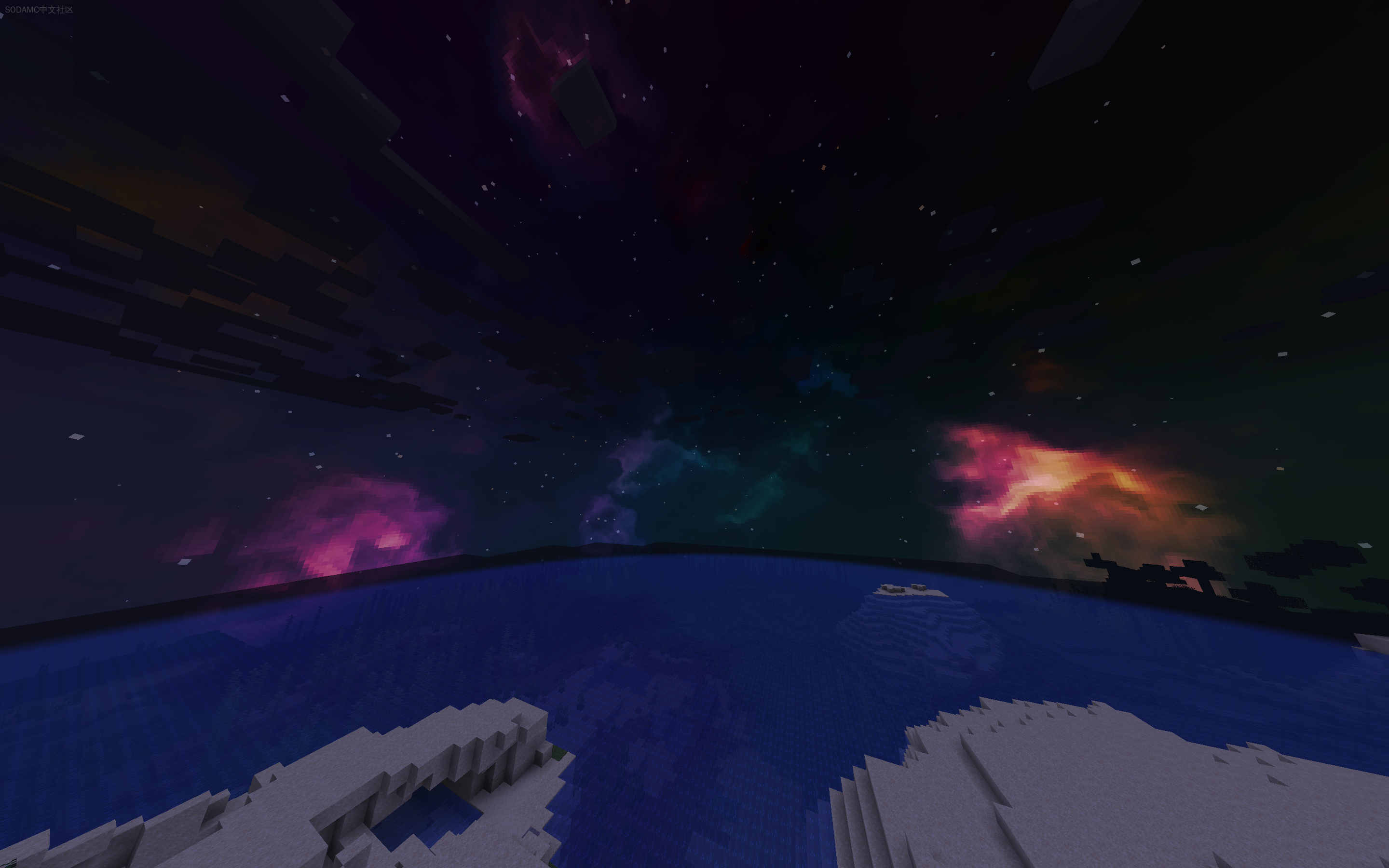 This mod renders a seed/server-dependent skybox that is 100% generated in runtime with cool shader-like nebulas.