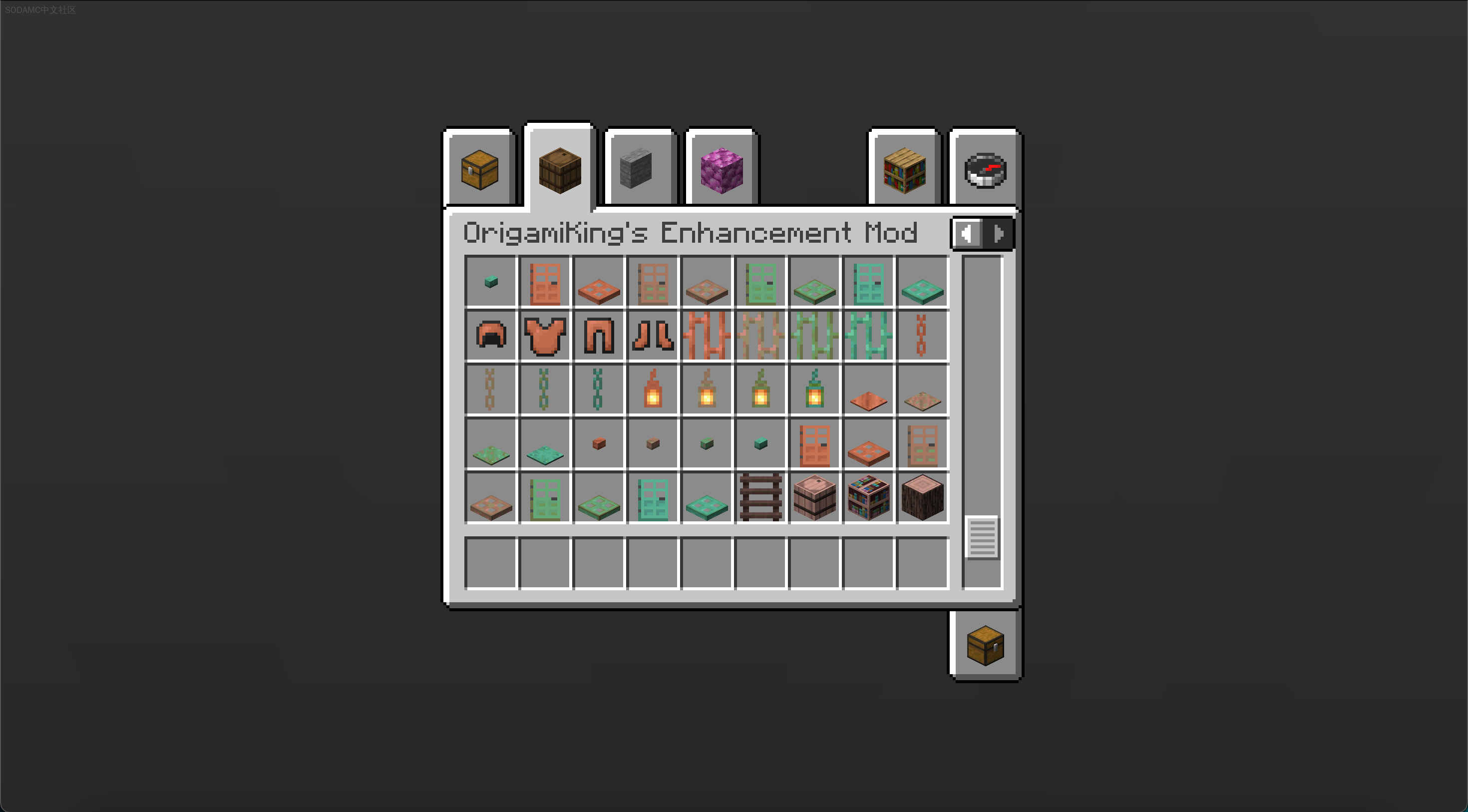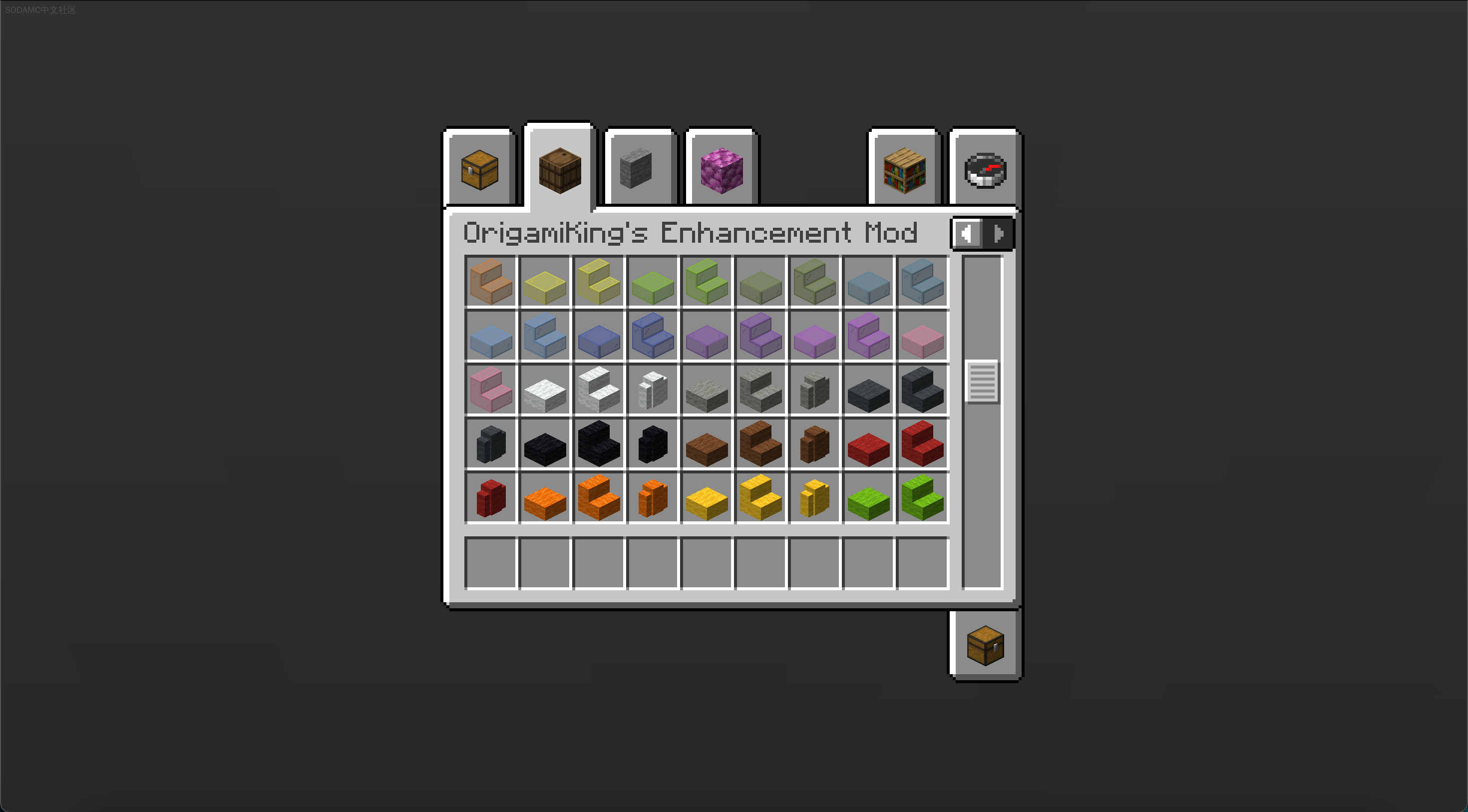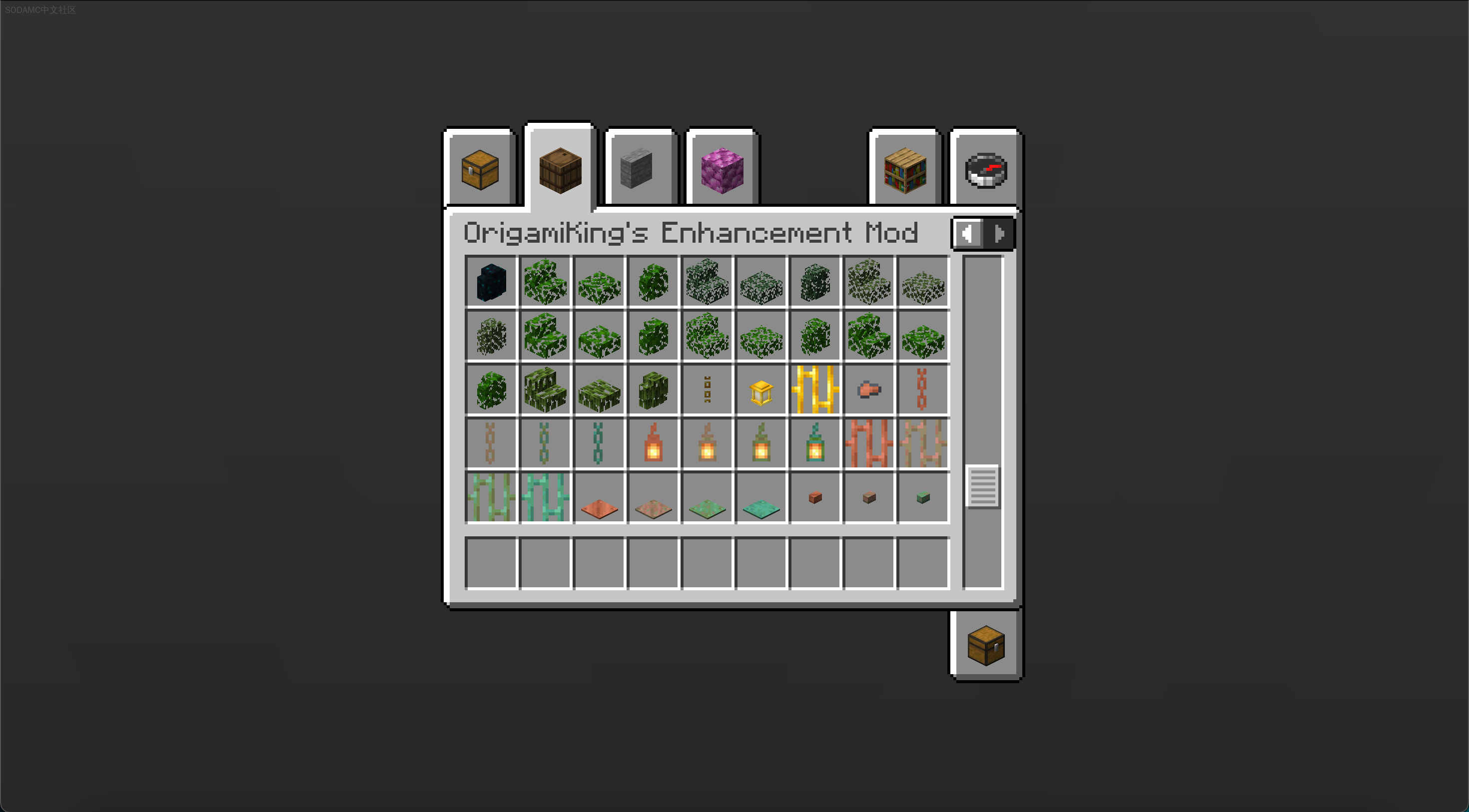 OrigamiKings Enhancement Mod (OrigamiKings Enhancement Mod)Github |相关wiki |源站链接支持: fabricA mod based on enhancing Minecraft. Adds a woodcutter and Vertical slabs