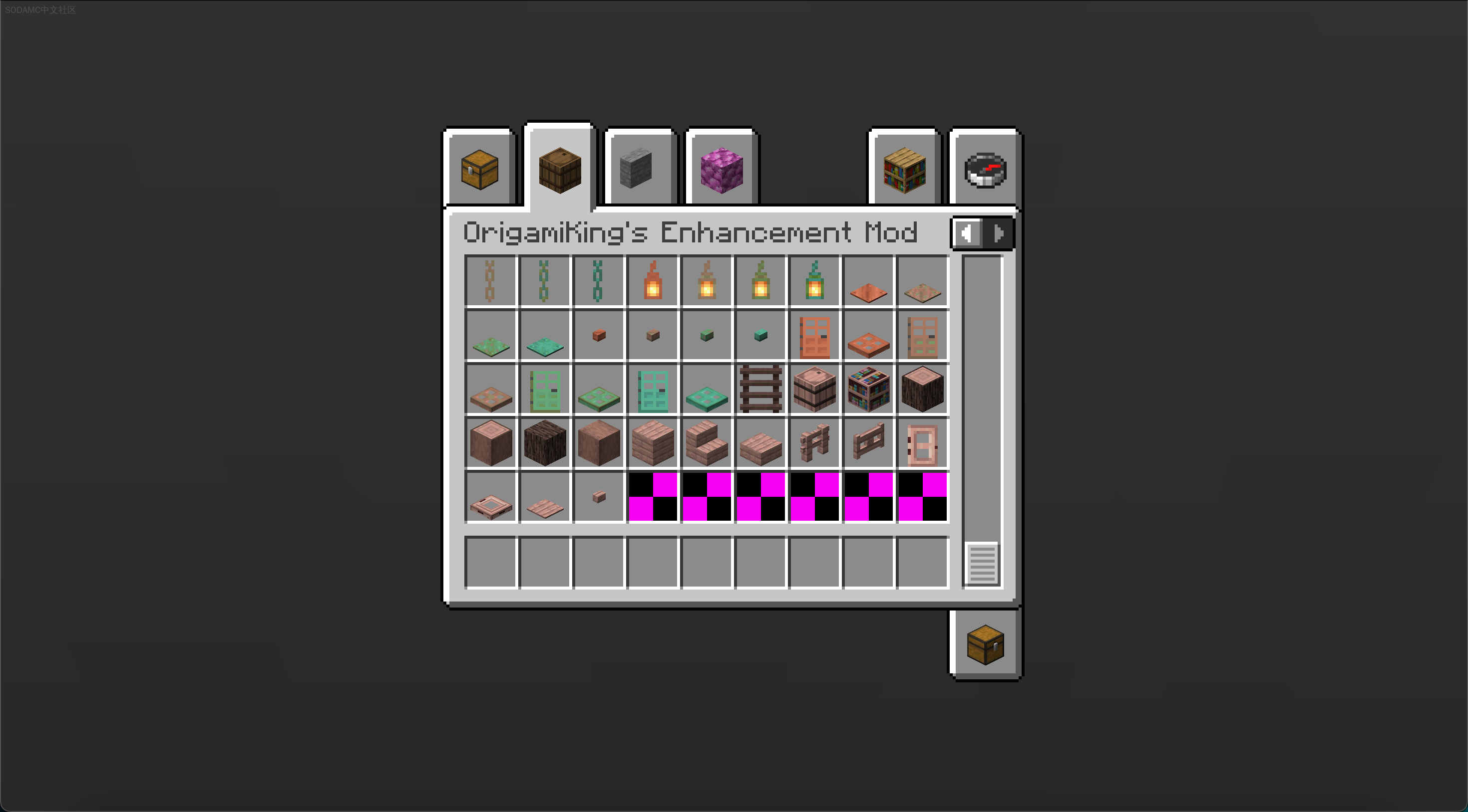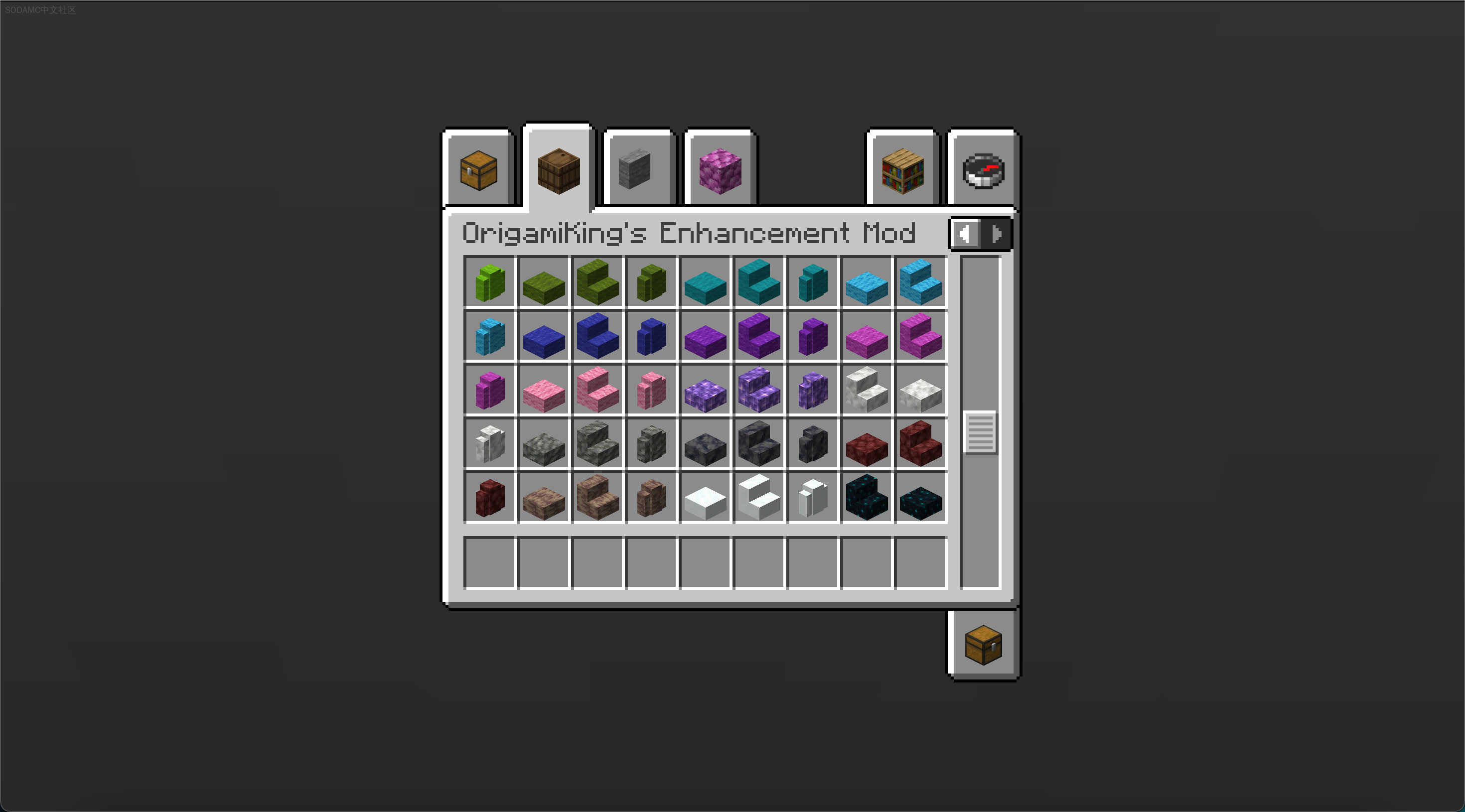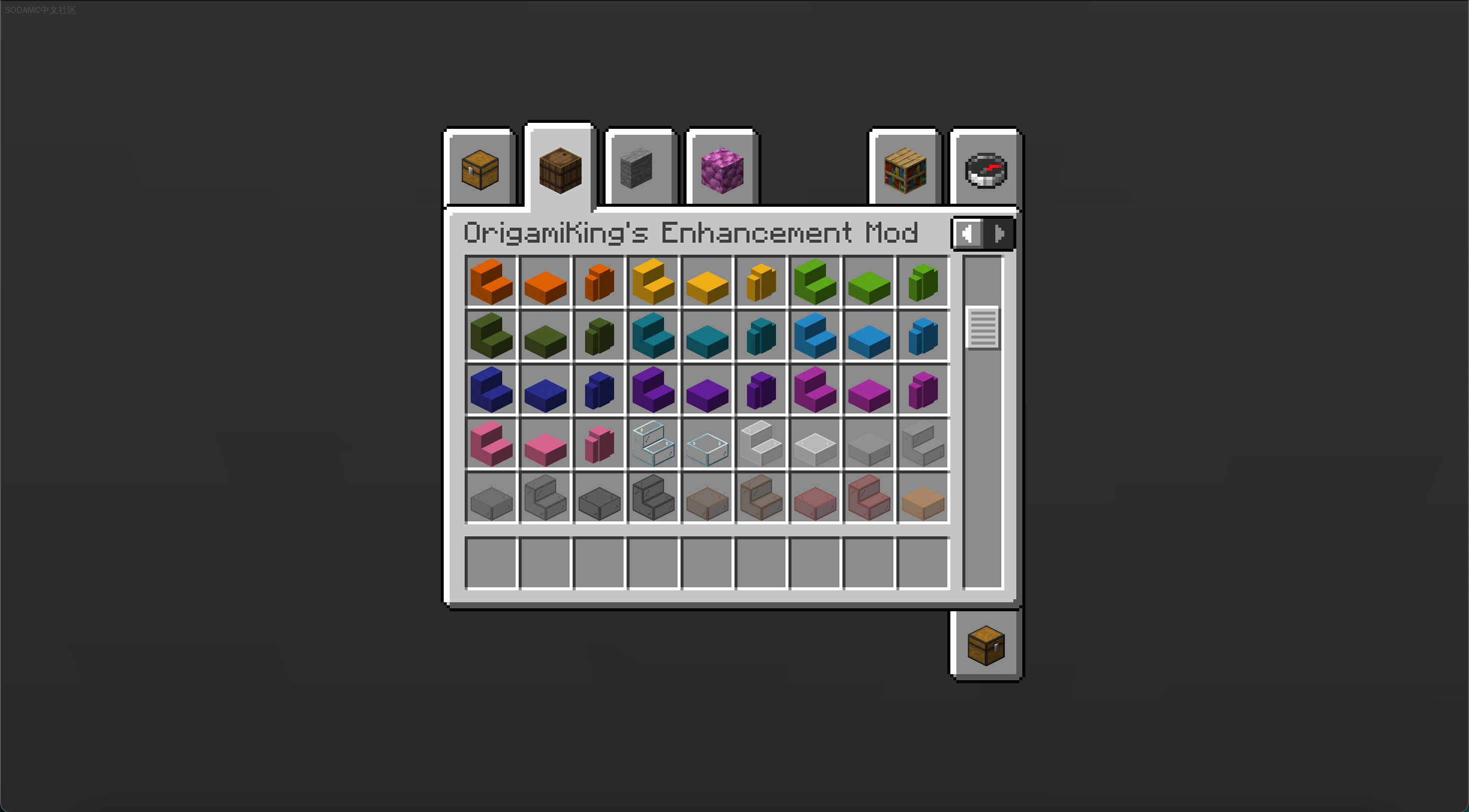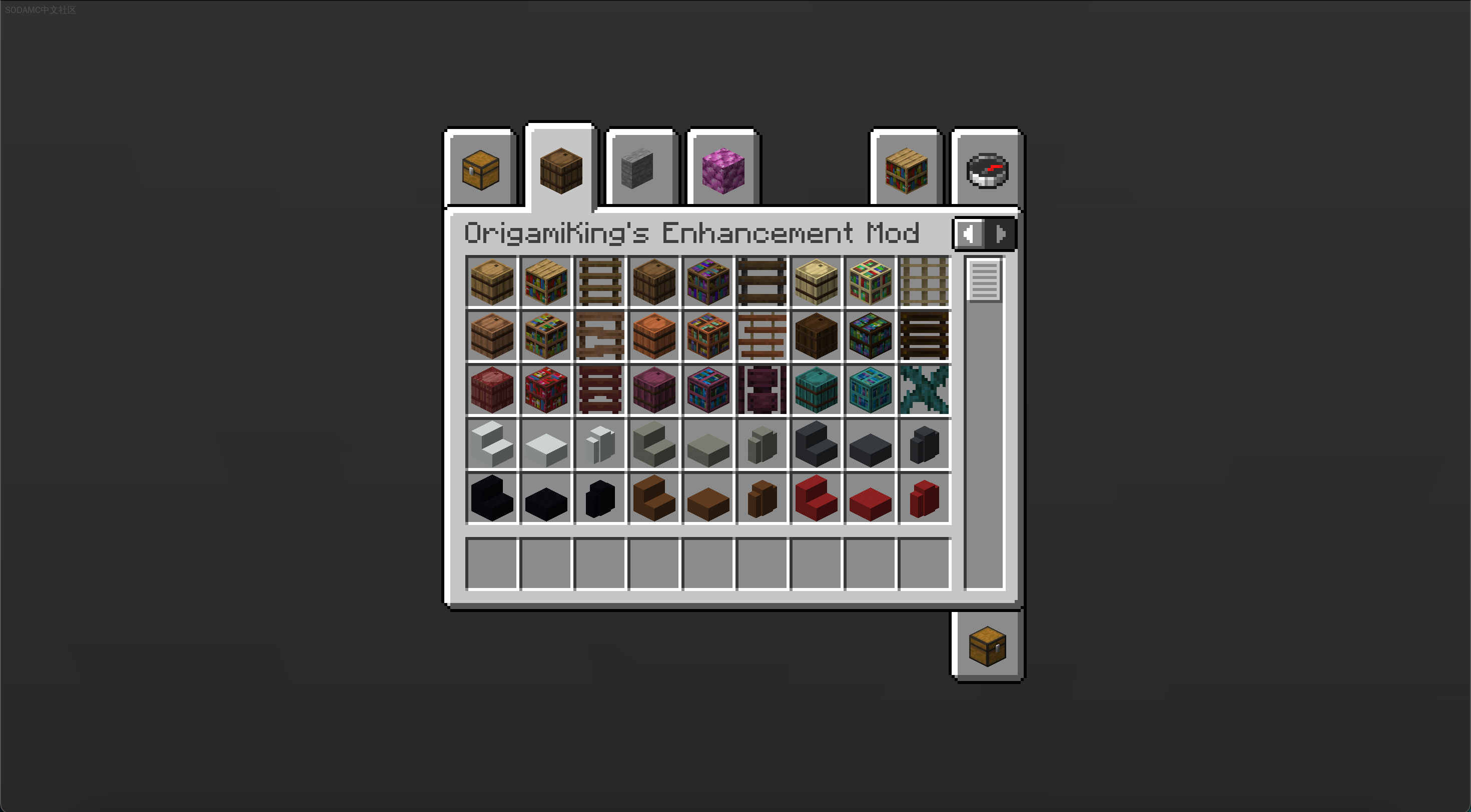 OrigamiKings Enhancement Mod (OrigamiKings Enhancement Mod)Github |相关wiki |源站链接支持: fabricA mod based on enhancing Minecraft. Adds a woodcutter and Vertical slabs