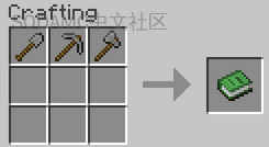 你可以通过在存货栏或工作台的合成栏中简单地将所需材料的镐、斧和铲放入合成栏来合成Paxels。需要注意的是,尽管合成产物将显示为知识书,但实际点击后仍将得到最初合成的物品。