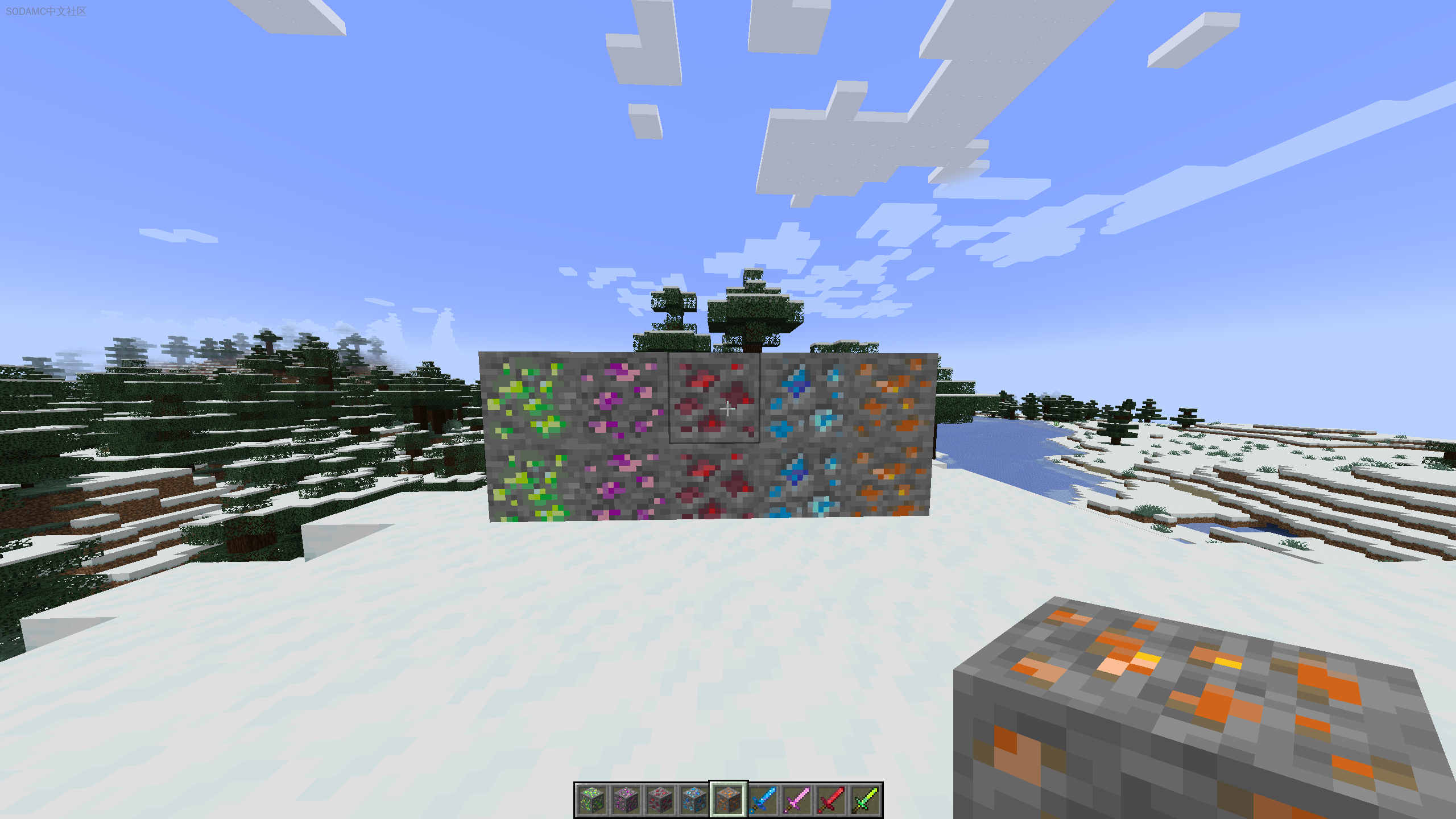 矿石会自然生成在主世界,为你的洞穴增添更多的色彩。