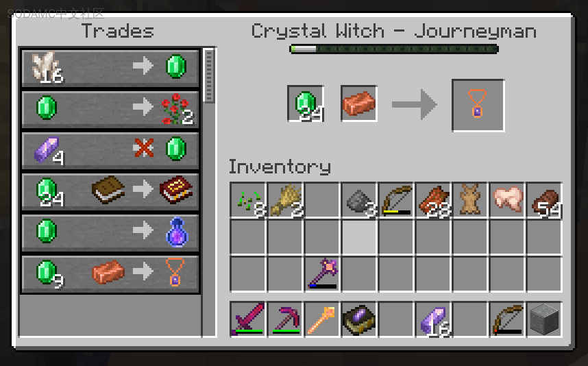 * 说到村民,找到村庄中的水晶女巫,并与她们交易紫晶注能装备和物资!